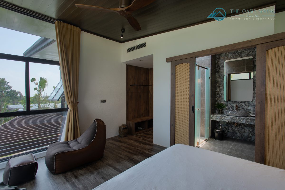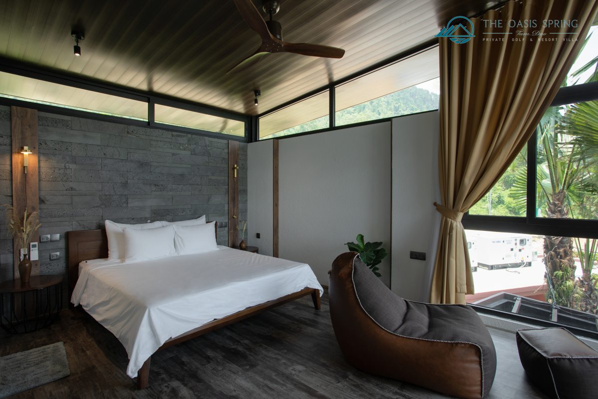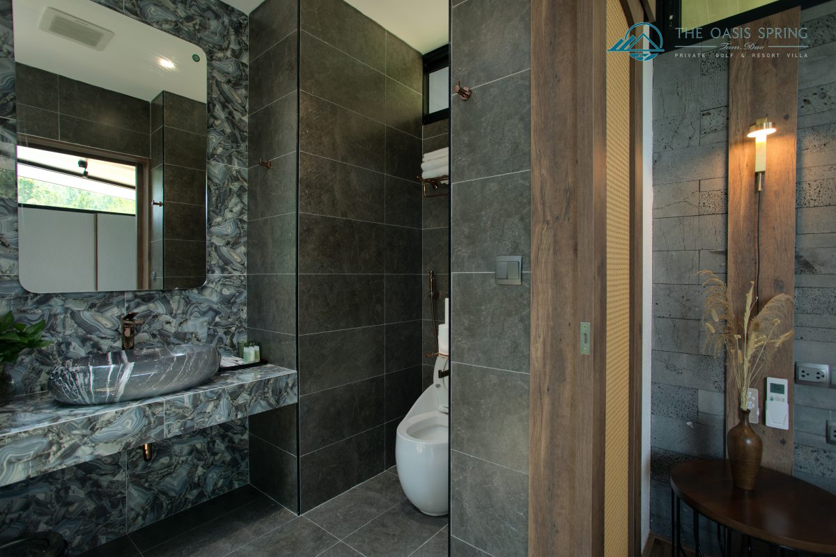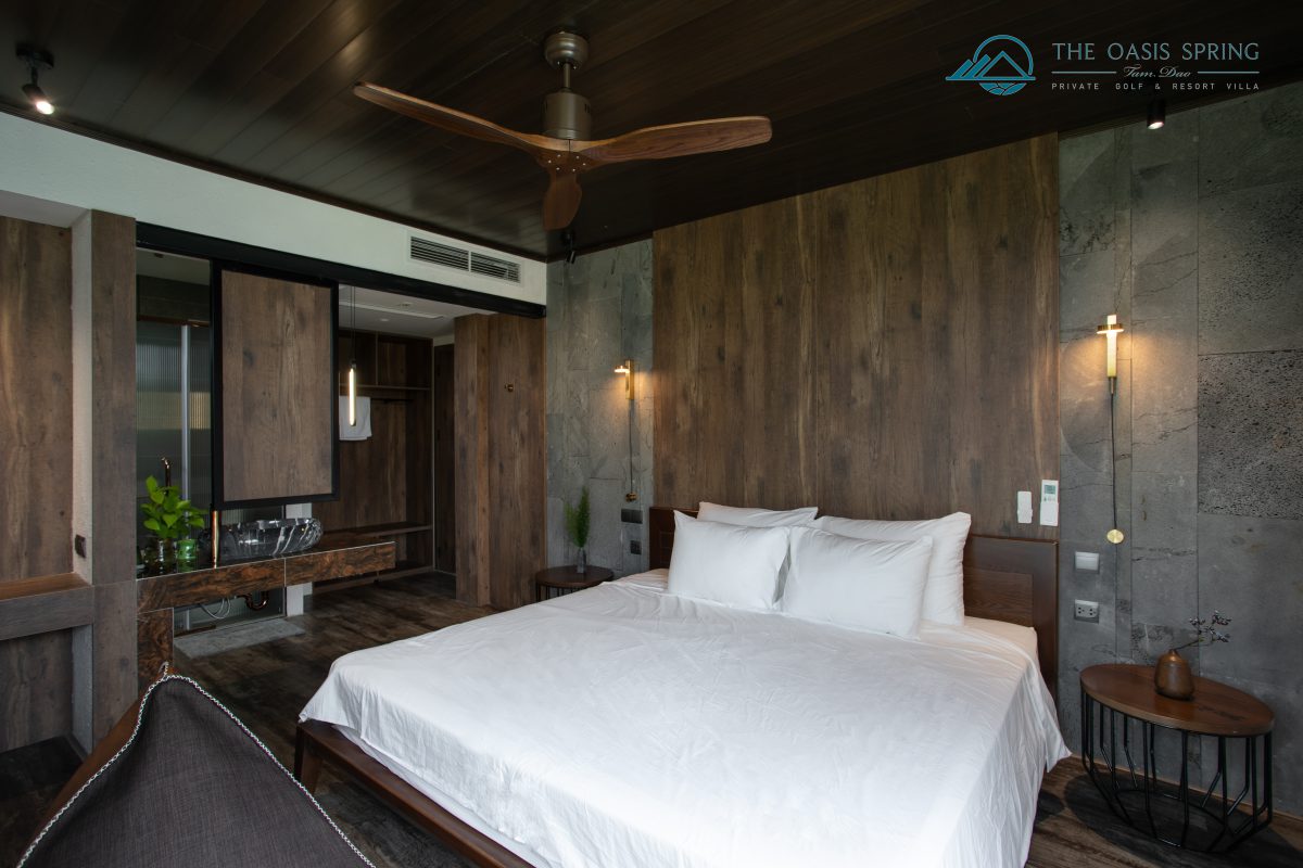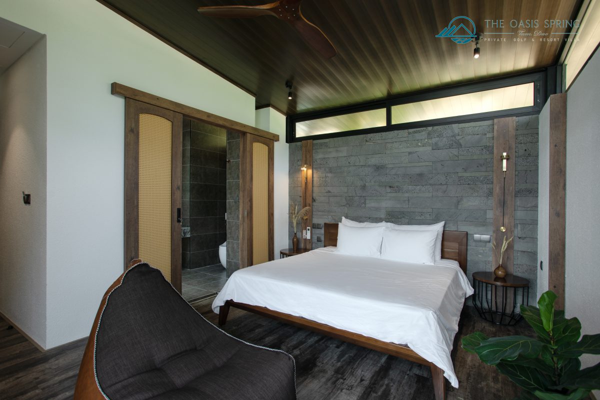 – Hai tầng nổi với 1 phòng khách, 5 phòng ngủ, phòng ăn, phòng vui chơi (Bi-a, karaoke…). Đặc biệt phòng ngủ được thiết kế rất gần gũi với thiên nhiên, luôn tràn ngập không khí trong lành của Tam Đảo và view không gian xanh cực đẹp nhìn thẳng vào sân Golf.