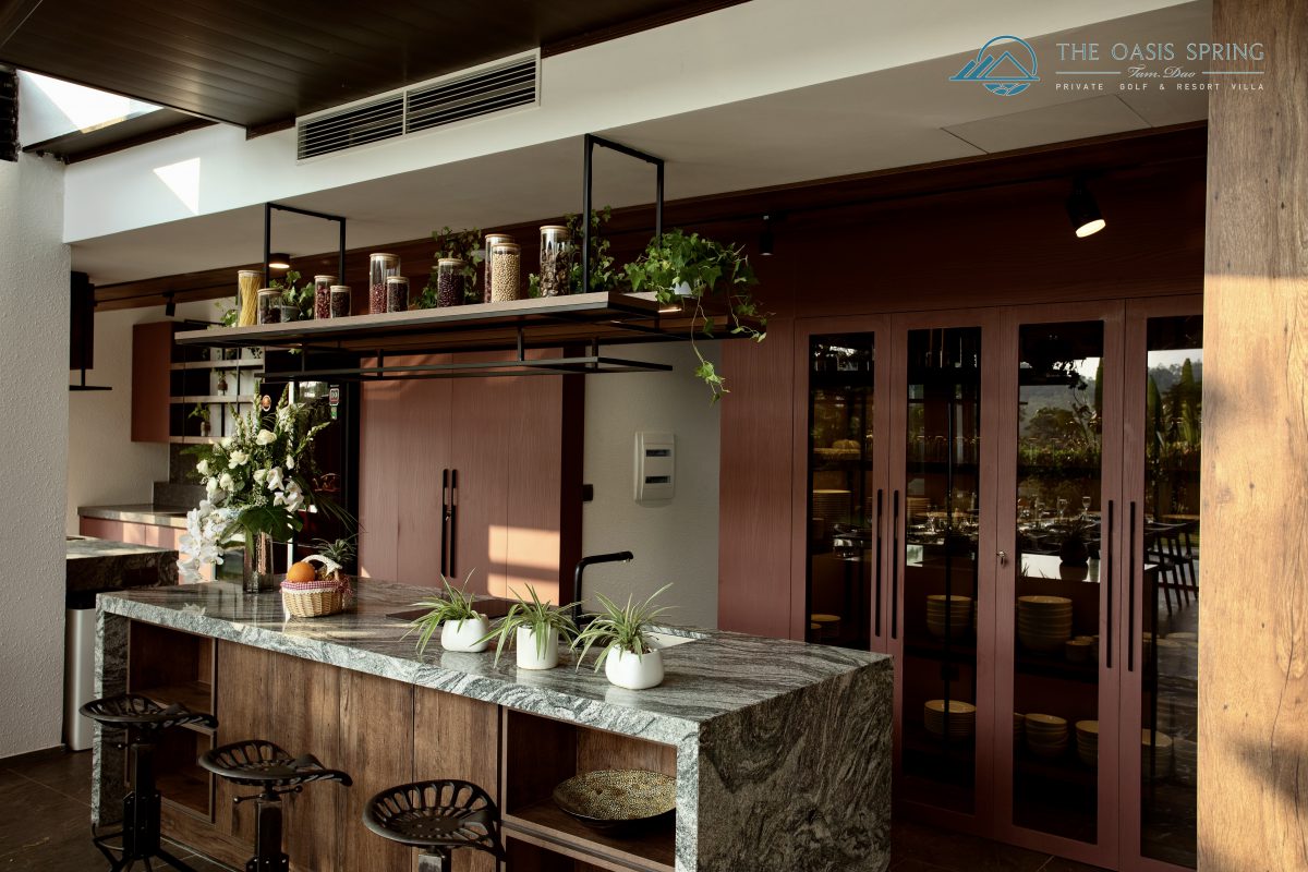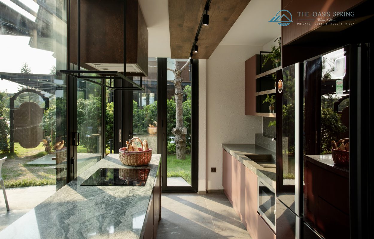 – Bếp được thiết kế kiểu dáng hiện đại, sử dụng toàn bộ sản phẩm cao cấp nhập khẩu đảm bảo cho những gia đình hay nhóm bạn muốn trổ tài, tự tay nấu nướng.