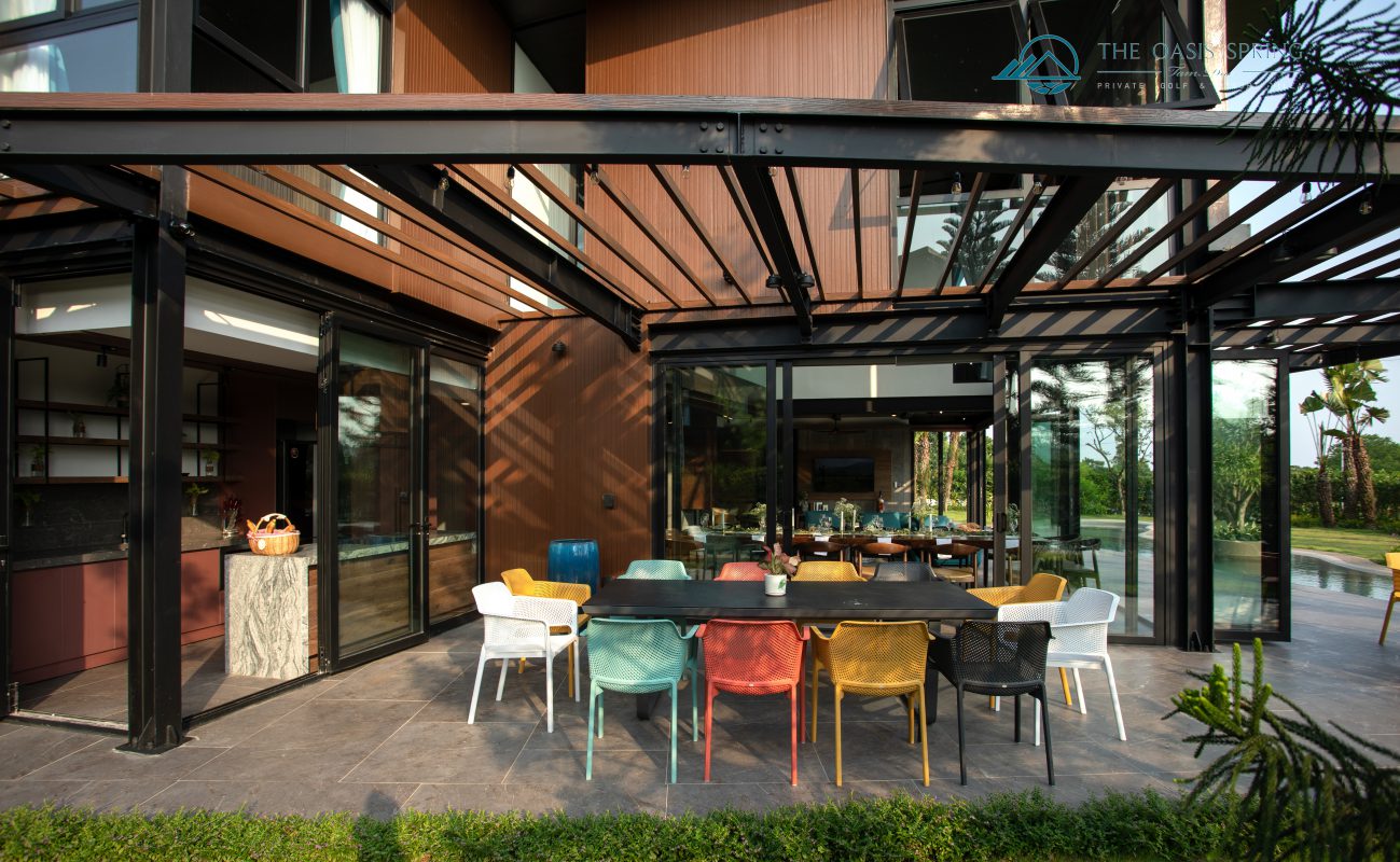 – Khu vực nướng và bàn ăn bàn BBQ ngoài trời